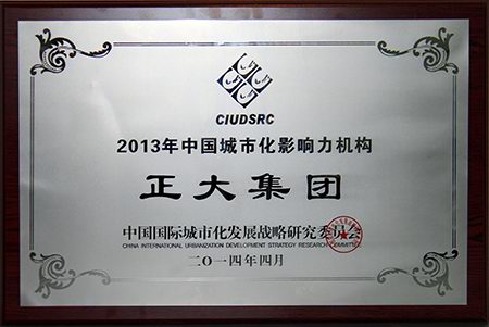 正大集團(tuán)榮膺“2013年中國城市化影響力機(jī)構(gòu)”榮譽(yù)稱號
